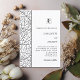 White background decorated with black botanical pattern and text. Personalize and add your monogram initials and the details.