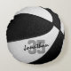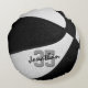 This cool team colours basketball themed pillow for him or her features the realistic image of a basketball that has alternating black and white recolored panels - personalise with player name in an "autograph" style font overlying the athlete's jersey number - by katz_d_zynes