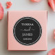 Black & White Bride Groom Name Date Wedding Favour Classic Round Sticker