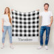 Personalised holiday fleece blanket with a classic black and white buffalo check plaid pattern. Customise it with your name or other custom text. Use the design tools to choose any background colour, edit the text fonts and colours, or add your own photos to create a one of a kind Christmas throw blanket. A special and unique personalised gift!