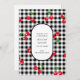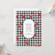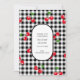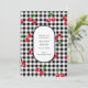 Send cheerful holiday greetings with a black and white buffalo plaid Christmas card featuring playful cherry fruit accents and festive typography.