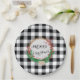 Relax and enjoy your guests thanks to those modern Holiday paper plates . They have a black and white Buffalo check background and a red berries wreath . Personalise them with your own text using the template . Don't forget to look for the matching paper napkins .