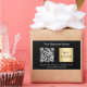 A stylish, classic black background. Personalise and add your business name, your own business logo, qr code to your website and a text. White text.