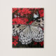 Black & White Butterfly on Red Flowers Jigsaw Puzzle