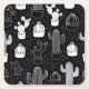 Black & White Cactus Doodle Pattern Square Paper Coaster