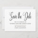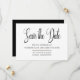 Elegant and timeless black and white design. Save the Date is written in beautiful script text. Your names, wedding date, and location follow. You can include an additional message on the back.