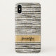 This stylish black and white hand-drawn striped pattern Case-Mate Barely There iPhone X Case has small gold dots overlaid on top that is sure to be a hit with the modern fashionista! There is a simulated wide gold foil band across the bottom that is personalised with your name or other text.