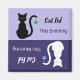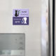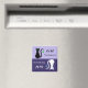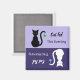 A reminder to feed the cat and let others know that the cat has been fed. Simply turn the magnet around when the cat has been fed in the morning or evening. The evening side has a black cat with a green star hanging from their tail. The morning side has a white cat with a blue star hanging from their tail. The background is mauve / lavender and purple.