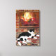 Black White Cat Lying front of Fireplace Canvas Print