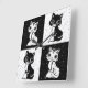 Black and White Chequered Monogram illustration Kitty Cat Block Print Pattern Design