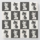 Black and White Chequered Monogram illustration Kitty Cat Block Print Pattern Design