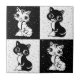 Black and White Chequered Monogram illustration Kitty Cat Block Print Pattern Design