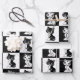 Black White Cat Monogram Block Print Wrapping Paper Sheet