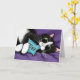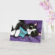 Customisable greeting card for all occasions. Features a cute tuxedo cat playing with a blue catnip pillow. Created from an original painting © 2009 Lisa Marie Robinson/ All Rights Reserved