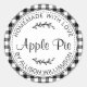 The Black White Check Apple Pie label features a cosy farmhouse buffalo-check border with soft charcoal lettering and sweet botanical accents for a warm homemade look. Perfect for labelling fresh pies, baked goods, treat boxes, and holiday gifts, this round sticker adds a heartfelt “homemade with love” touch. Ideal for fall baking, Thanksgiving desserts, Christmas gifting, and small-batch cottage businesses.