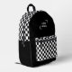 Black White Chequerboard Check Pattern Logo Printed Backpack features a retro black and white chequerboard pattern with your custom business logo. Perfect for corporate gifts, school, sports, gym, travel and more. Designed by ©2025 Evco Studio www.zazzle.com/store/evcostudio