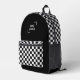 Black White Chequerboard Check Pattern Logo Printed Backpack