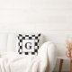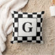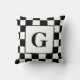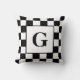 Stylish pillow features a black and white chequered border pattern with a large custom monogram in the centre within a white square. Add your initial in the sidebar. Alternating black and white squares form the bold geometric pattern around the edges.