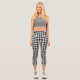 Stylish capri leggings with a black and white trendy buffalo plaid lumberjack checked pattern print.