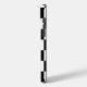 Shock absorbing iPhone case features a sleek black and white chequered pattern made of rows of alternating white and black squares. Feel free to customise the product to make it your own.