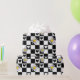 Wrapping paper featuring black and white checks with daisies and hearts; perfect for wrapping children’s birthday gifts, baby showers, Valentine’s Day, and gifts for someone special in your life.