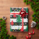 Black White Christmas Snow Stripes Red Green Trees Wrapping Paper