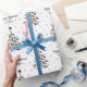 Black & White Christmas Tree Pattern Custom Text Wrapping Paper