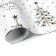 This Christmas wrapping paper features a black pine tree and black snow pattern with custom text on a white background. For more advanced customisation of this design, please click the "customise further" link.