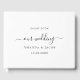 A stylish white background. Personalise and add your names and wedding date. Black text.