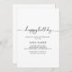 This black white classic happy birthday party invitation is perfect for a modern event. The simple and elegant design features classic and fancy script typography in black and white.