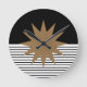 Black White Colorblock & Brown Sun Round Clock