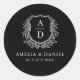 Black White Crest Modern Monogram Wedding Classic Round Sticker
