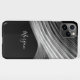 Personalise name in white script on Black and White Curved Light Rays on black background for a contemporary and dynamic look that will dress-up your phone case perfectly. Makes a great gift.