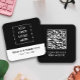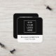 Simple, modern, minimalist black and white square business card with custom logo and QR code on the back.
