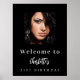 A welcome board for a 21st (or any age) birthday party. Personalise and add a photo, a name and age. A classic black background, white text.