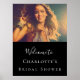 A welcome poster for a Bridal Shower. Personalise and add a photo, a name. A classic black background, white text.