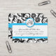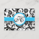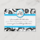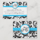 Black & White Damask Bright Aqua Trim with Dots Business Card