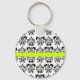 BLACK WHITE DAMASK FLORAL GREEN YELLOW STRIPE KEY RING
