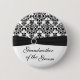 This black and white damask with faux ribbon and jewels Grandmother of the Groom button matches the wedding invitation show below. The text is customisable and so is the shape and size of the button. If you need anything changed, please email niteowlstudio@gmail.com.