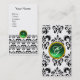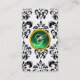 BLACK WHITE DAMASK GREEN GEMSTONE MONOGRAM pearl Business Card