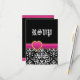 Black white damask hot pink heart wedding RSVP Card