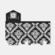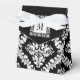 Black, white damask pattern wedding favour box with monogram, featuring a classic damask pattern and your monogram in a frame with damask border. This modern, trendy and cute girly monogrammed favour box is perfect for other special occasions too such as bridal showers, birthday parties, baby showers etc. You can personalise it and add initials or other text.