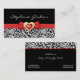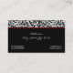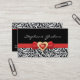 Black white damask pattern with red bow and jewel business card