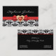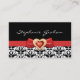 Black white damask pattern with red bow and jewel business card