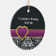 Black white damask purple heart Save the Date Ceramic Tree Decoration