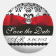 BLACK & WHITE DAMASK RED RIBBON MONOGRAM Gemstone Classic Round Sticker