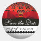BLACK & WHITE DAMASK RED RIBBON MONOGRAM Gemstone Classic Round Sticker