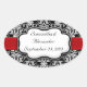 Stylish and posh black and white damask background design, with red ribbon and white frame shape. A cute wedding invitation and matching set collection. All Designs Copyright © 2012 www.CustomInvitesOnline.com