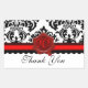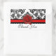Elegant,classy Art Nouveau damask "Thank You " Sticker with a red stripe by Bulgan Lumini (c) .Easy to customise with your initials and own text  as an announcement ,save the date, bridal showers,sweet 16 birthday parties, anniversary,engagement showers, or just about any event you wish!