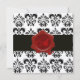BLACK & WHITE DAMASK, RED WAX SEAL MONOGRAM Silver Invitation